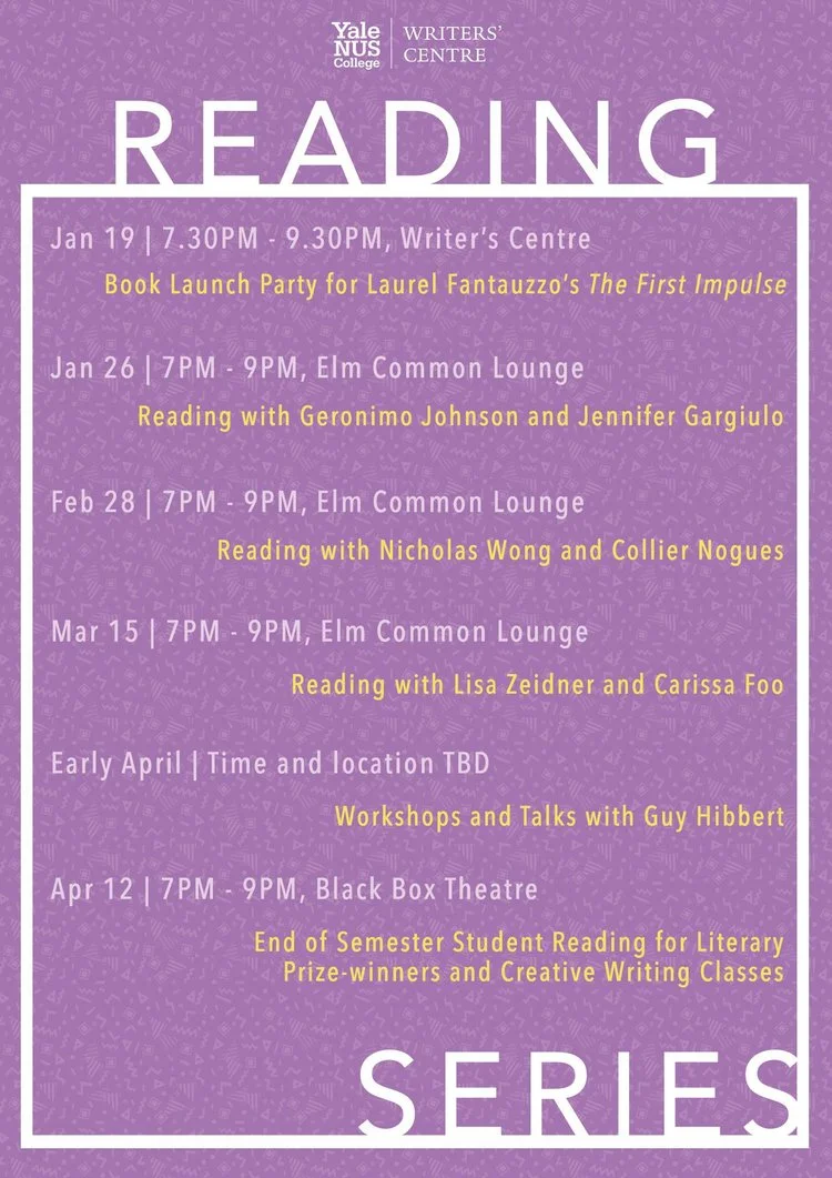 The Yale-NUS Writers' Centre is happy to announce an entire slate of readings by international and visiting writers in their first semester of 2017.