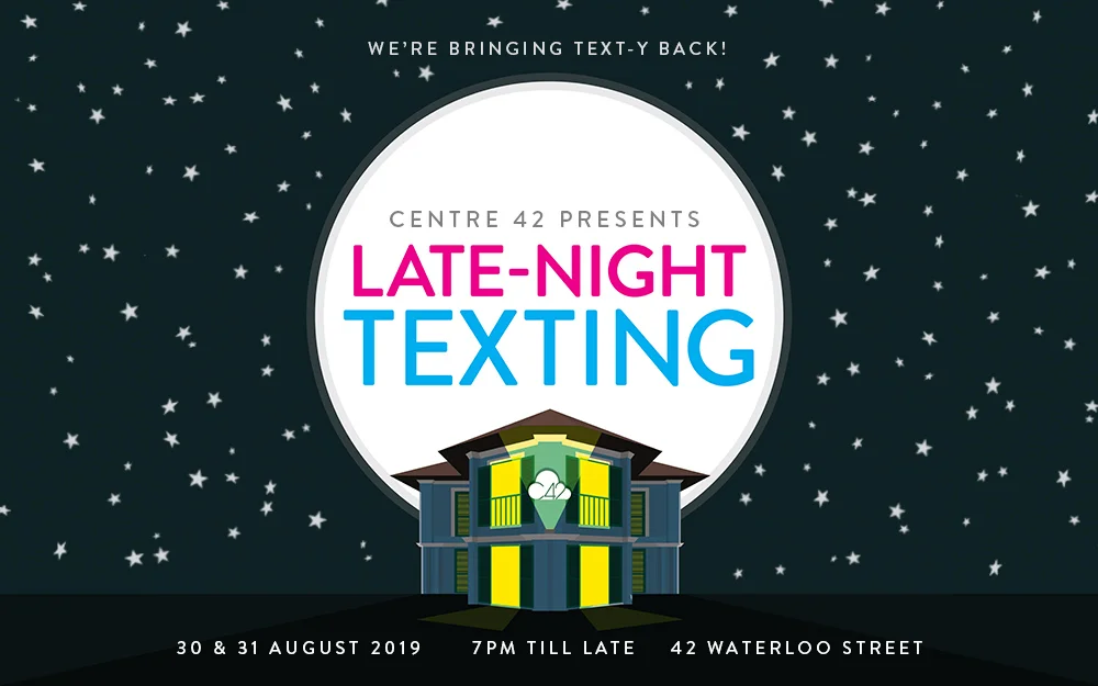 We’re ramping up the textual tension once again this August! LATE-NIGHT TEXTING is Centre 42’s annual showcase of exciting new text-based works by some of Singapore’s freshest independent theatre-makers. In our fourth Late-Night Texting, we bring you over 25 bite-sized performances from Attempts, Brown Voices, Main Tulis Group, Pink Gajah Theatre, C42 Vault artists, and C42 Boiler Room playwrights.