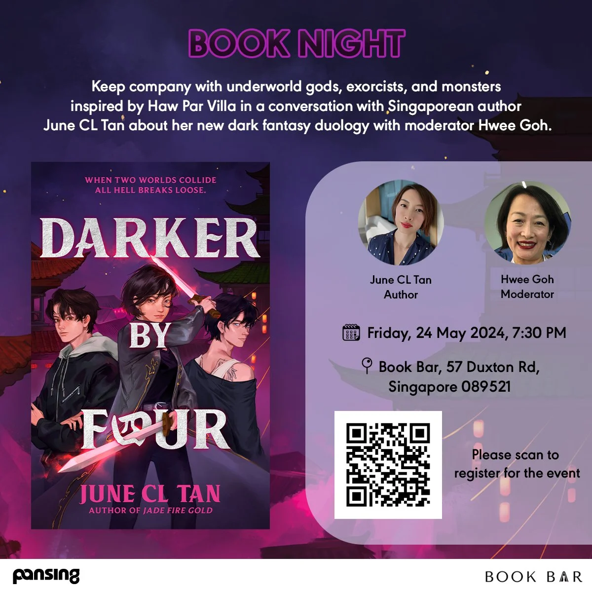 Keep company with underworld gods, exorcists, and monsters inspired by Haw Par Villa in a conversation with Singaporean author June CL Tan about her new dark fantasy duology with moderator Hwee Goh.