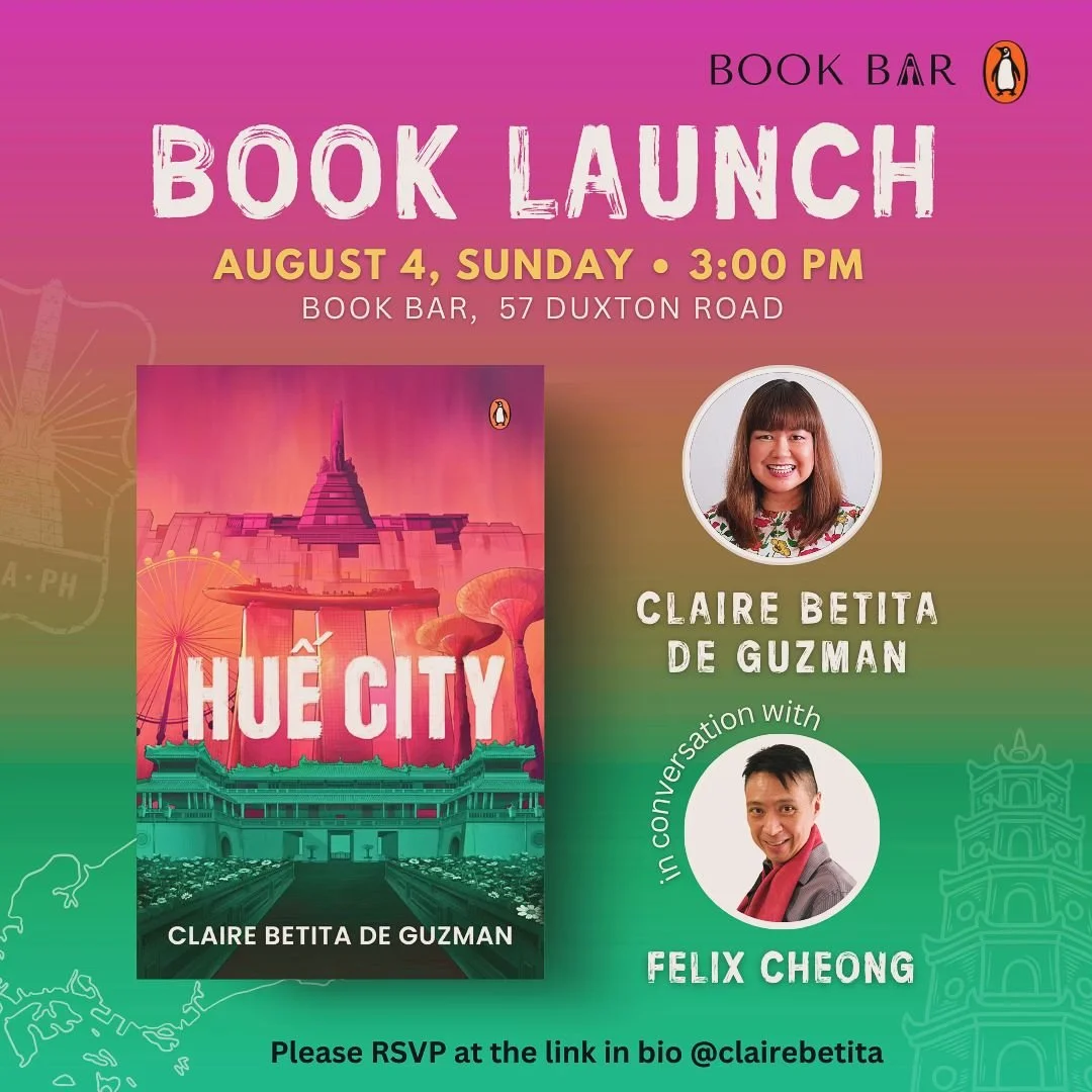 Hue City is the new literary fiction novel of Claire Betita de Guzman, author of the bestselling Sudden Superstar. Award-winning poet and graphic novelist Felix Cheong will be moderating the launch event.