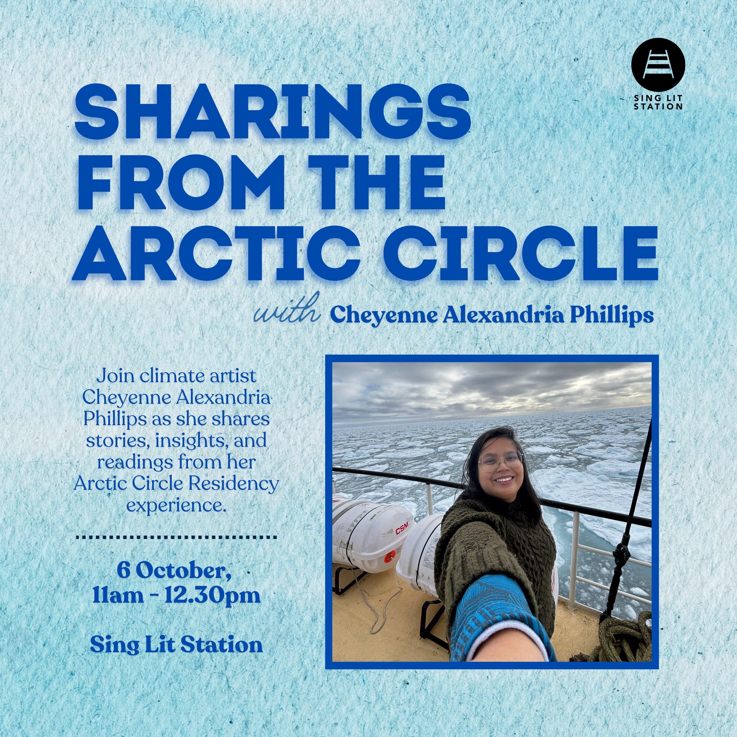 Join climate artist Cheyenne Alexandria Phillips as she shares her experience on the Artic Circle Residency. Listen to her stories and learnings and enjoy readings and sharing of work she is developing from the experience.