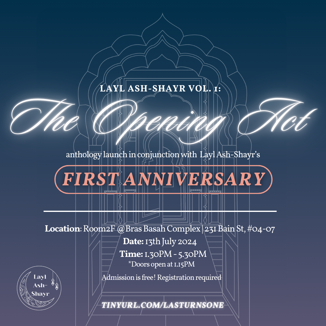 Layl Ash-Shayr turns ONE this July and they’d like to celebrate our anniversary with you! They will also be launching our inaugural anthology, Layl Ash-Shayr Vol. 1: The Opening Act, so do join us for this milestone