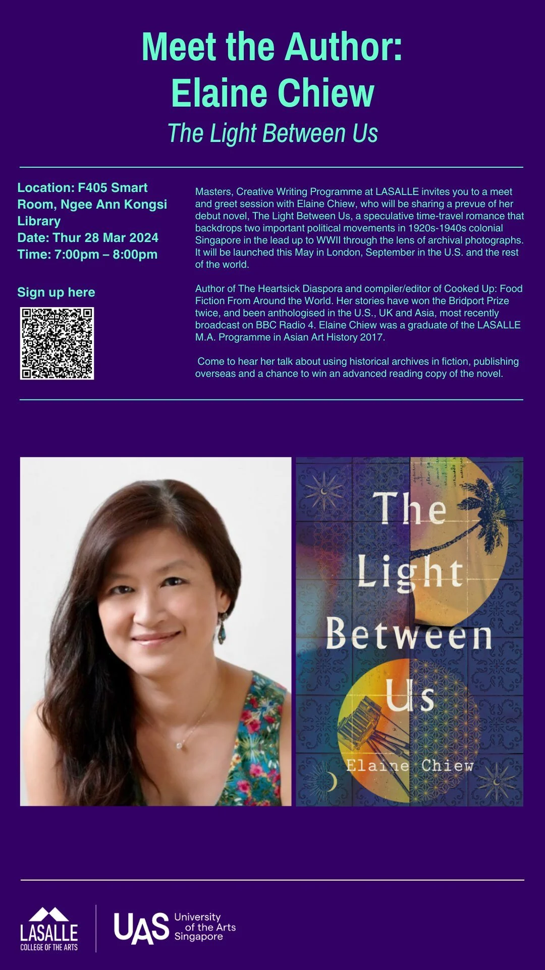 “The Light Between Us” is a Southeast Asian historical romance that defies time and space as an archivist explores her city’s tumultuous past through a supernatural connection. Inspired by her research into Singaporean historical archives, Elaine Chiew weaves Chinese mythology and early 20th century colonial Singapore into this speculative epic.