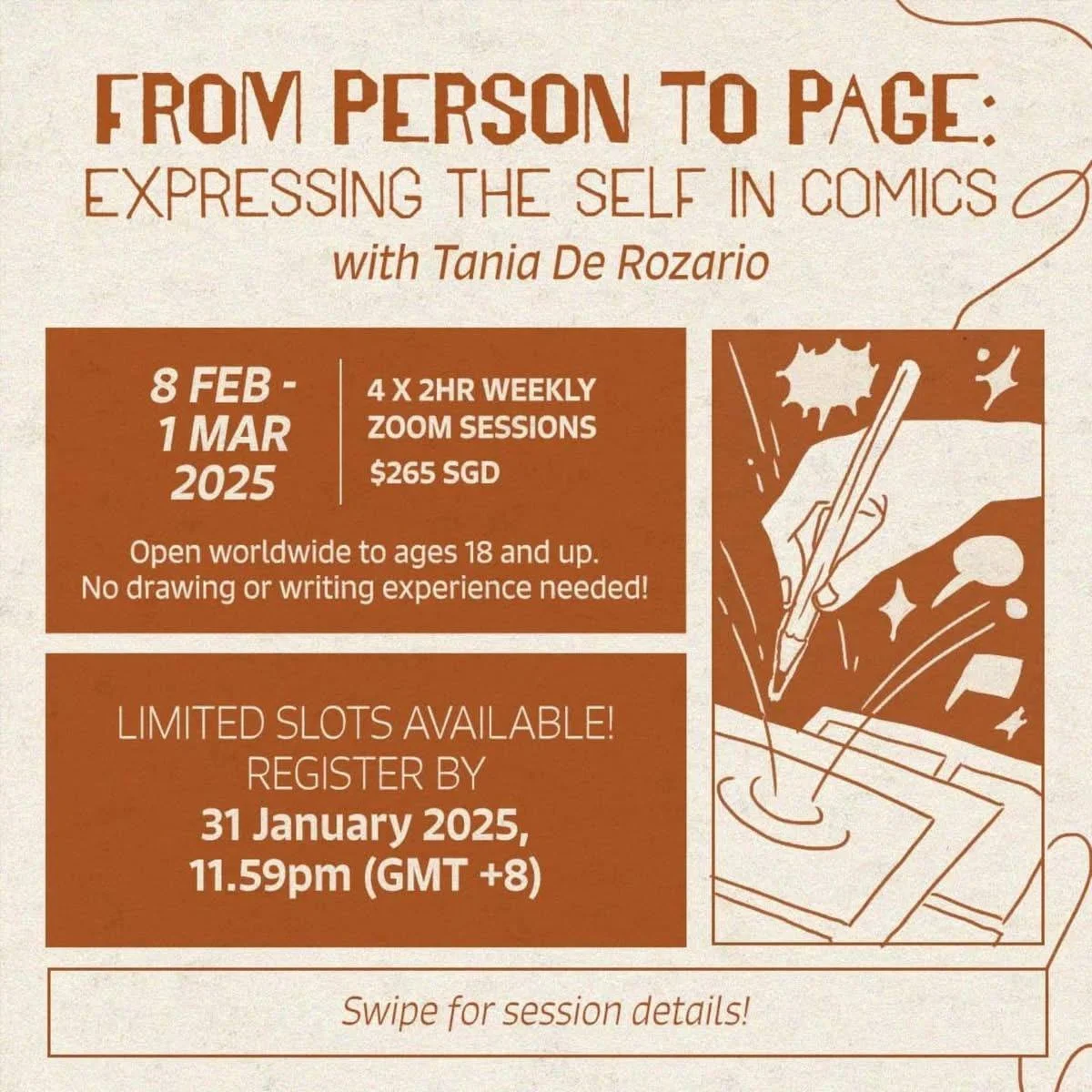 Join writing and visual art powerhouse Tania De Rozario in this four-week series, where she will introduce you to her favourite comics, demonstrate how the craft of comics allows you to understand visual metaphors, and explore tools used in visual storytelling to make introspective, diaristic comics.